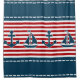 Diseño náutico con velero y decoración de ancla sobre fondo rayado rojo y blanco