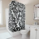 Esta cortina de ducha tiene un diseño visual abstracto.