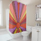 La cortina de la ducha muestra un diseño de puesta de sol vibrante. Para la personalización del color, consulte: info@KBMD3signs.com