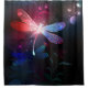 Flor, vuelo, libélula roja, con alas transparentes y detalladas sobre fondo oscuro, nocturno y luminoso con plantas tropicales y luciérnagas. Lluvia roja.