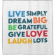 Vivir simplemente, soñar en grande, estar agradecido, dar amor, reír mucho!