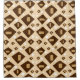 A refined geometric pattern featuring brown and white squares, diamonds, and hexagons on a warm beige background.