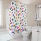 Esta cortina de ducha tiene un diseño de Boho de triángulos más grandes con puntos dispersos por el diseño en los colores de Boho.