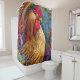 ¡Este arte de gallo es un espectáculo vibrante! La criatura de plumas está orgullosa y majestuosamente entre un caleidoscopio de colores vivos.