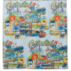 Cortina de ducha California Dreaming con estilo de medio ladrillo y personalizada con fondo azul
