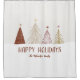 El elegante diseño de la cortina de la ducha del baño festivo incluye una elegante exhibición de árboles de Navidad nevados en rojo, dorado y rosa sobre un fondo beige nevado y neutro de rayas ligeras. La parte inferior está cubierta de nieve blanca con "Felices Fiestas" en elegante tipografía clásica. Agregue un nombre personalizado o una línea de texto personalizado en la secuencia de comandos roja coincidente con la plantilla simple de usar.