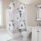 Cortina De Ducha Elegante hibiscus blanco sobre fondo rosa suave