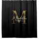 Elegante Script Metallic Black Gold Monograma Cortina de ducha
