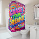 Esta colorida cortina de ducha dice "Chase Your Dreams".