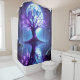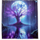 Esta cortina de ducha tiene una hermosa escena arbórea con la luna sobre ella.