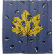 Extraño y espeluznante diseño de Halloween con arte botánico de una hoja amarilla y extraños ojos espeluznantes detrás de ella.
