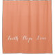 Faith Hope Love Coral Peach Inspiradora Cortina de ducha con palabras Faith. Esperanza. Amor. escrito en script.