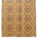 Esta cortina de ducha tiene un diseño geométrico de cuadrados manipulados en tonos naranjas, marrones y verdes sobre un campo de crema. Si quieres el mismo diseño con colores diferentes, envíame un mensaje.