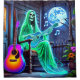 Esta cortina de ducha tiene un fantasma tocando una guitarra.