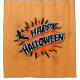 Feliz ilustracion de Halloween al estilo cómico con diseño de texto, murciélago y decoración de estrellas en medio tono de fondo. Es posible cambiar el color de fondo y añadir uno diferente al diseño con su elección.