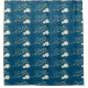 El diseño de esta cortina de ducha presenta un gráfico digital de inspiración vintage de un poinsettia blanco sobre un fondo azul oscuro. El texto del guión, en un color de gradiente dorado, dice: Feliz Navidad.