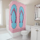 Un ilustracion con un par de chanclas rosas y azules. ¡Es verano! Tomemos un descanso y nos divirtamos un poco bajo el sol. ¿No estás emocionado de preparar todas tus cosas para las vacaciones? No olvides tus chanclas.