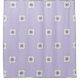 Un diseño de arte fractal de color morado y dorado está embaldosado a lo largo de la cortina de la ducha. El diseño tiene un aspecto floral. El fondo es lavanda. También hay accesorios de baño a juego.
