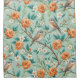 A charming shower curtain featuring colorful songbirds perched among blooming orange and white flowers and fresh green leaves on a soft mint background. A lovely choice for bird lovers, floral enthusiasts, and anyone who enjoys bright, artistic botanical patterns.