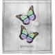 El baño cuenta con una cortina de ducha floral con mariposa arco iris. El diseño de la cortina de ducha presenta un par de mariposas vibrantes que descansan sobre una vina floral blanca sobre un fondo gris claro. También hay artículos de regalo adicionales disponibles con este diseño.