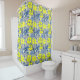 Cortina De Ducha Flores amarillas y azules con chispas.