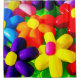 Montón de globos inflables de juguete en forma de flores de diferentes colores. ¡Feliz feriado! ¡Sé feliz! Cortina de ducha para decorar el cuarto de baño para divertirse y estar de buen humor.
