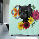Cortina De Ducha Flores de retrato jaguar negro