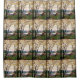 La bella arte magnífica del vintage de la reproducción del vitral de Nouveau Tiffany del arte del iris florece debajo de árboles florecientes de la magnolia al lado de un lago, en collage, está en esta cortina de ducha.