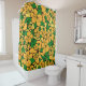 Diseño de flores de Hibiscus en amarillo/naranja por Rockett Graphics. El color de fondo de la cortina es el personalizable.