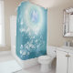 Flores blancas y una mariposa en un círculo halo sobre un fondo verde azulado azul. Creé este diseño de fantasía con amor al detalle como un archivo vector. El estilo es ilustrativo y trabajé con transparencia.