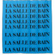 El cuarto de baño en francés (LA SALLE DE BAIN) en letras negras sobre un fondo turquesa sólido.