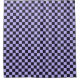 A checkerboard pattern with alternating lavender and black squares fills the image. The repeating geometric design gives a balanced and rhythmic appearance.