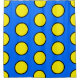Este divertido diseño colorido presenta grandes círculos de baldosas amarillas, delineados en negro, con un fondo azul brillante.