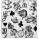 Basado en las imágenes originales de John Tenniel de Alicia en el País de las Maravillas de los años 1800, está el Odio Loco, el Gato Cheshire, el Conejo Blanco y Alicia, por supuesto. Buen ilustracion de dibujo.
