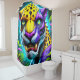 Esta cortina de ducha tiene un gato enfurecido.