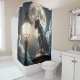 Esta cortina de ducha tiene un gato salvaje encima.