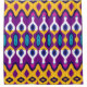 Un patrón sin fisuras con formas simples, simétricas en color morado, amarillo y azul