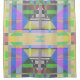 Patrón de formas geométricas coloridas, obras de arte hechas por personalizados en tonos prominentes de amarillo, verde, azul, violeta y con matices adicionales de burdeos, plata, gris, rosa y oro. Elegante diseño de arte digital a la moda.
