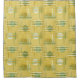 Moderna cortina geométrica de ducha en colores amarillo, mostaza, verde y blanco, con formas geométricas de círculo y barra, es similar al estilo de Miami de los años 80. El patrón de la cortina de la ducha es más grande o más pequeño.