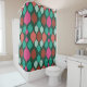 El diseño de la Cortina de Ducha Geométrica Verde Moderna de Mediodía del Siglo, con colores y formas retro que incluyen los colores rosa, turquesa y coralino. ¡Hazte ya mismo con una!