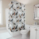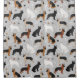 Cute German Shepherds in black and tan, black and red, black and silver, white and back color coats sit and stand with scattered dog bones and paw prints on a light gray background.