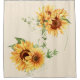 Esta cortina de ducha de estilo rústico presenta un bonito patrón de girasol floral con girasoles acuáticos en un suave fondo amarillo miel. Le da un ambiente acogedor y acogedor a cualquier habitación.