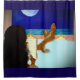 An African American woman/ black woman takes a candlelit bubble bath while reading a book with a moonlit ocean view through her window.