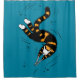 Cortina de gato divertida con un ilustracion de tinta de una extraña criatura gato nadando con movimientos similares a las anguilas sobre fondo personalizable azul oscuro. La carne está de alguna manera despojada de sus manos mostrando su esqueleto, pero el lindo animal está en su estado más feliz de la mente.