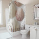 Una cortina de ducha de temática marina, diseñada con hermosas conchas de vieiras naturales, con bonitos colores de tierra, que son neutros en cualquier color. Diseñada como una imagen natural de la vida de la playa, adecuada para la decoración de la casa costera o de la Florida.