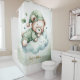El Oso De Teddy De Boho Verde Durmió La Cortina De La Ducha. Diseño único, bonito y elegante. Fácil de personalizar. Se pueden cambiar el estilo, el tamaño y los colores de las fuentes. Los elementos coincidentes están disponibles.