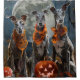 Descanse el espíritu espeluznante con este inquietante diseño de Halloween que presenta una manada de perros bajo un cielo oscuro, iluminado por la luna, rodeados de bates voladores y calabazas brillantes. Perfecto para los amantes de la diversión con sus peludos amigos.