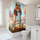 Esta cortina de ducha tiene un oso pardo retratado.