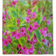 Esta pintura digital de aceite original de My Rubio Garden presenta la hermosa planta verde de Weigela con flores de Crimson y el follaje variado verde de Chartreuse. El resultado es un cuadro clásico del jardín de verano que te encantará.