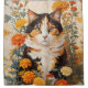 Cortina De Ducha Hermoso Gato Calico Con Flores Marigold